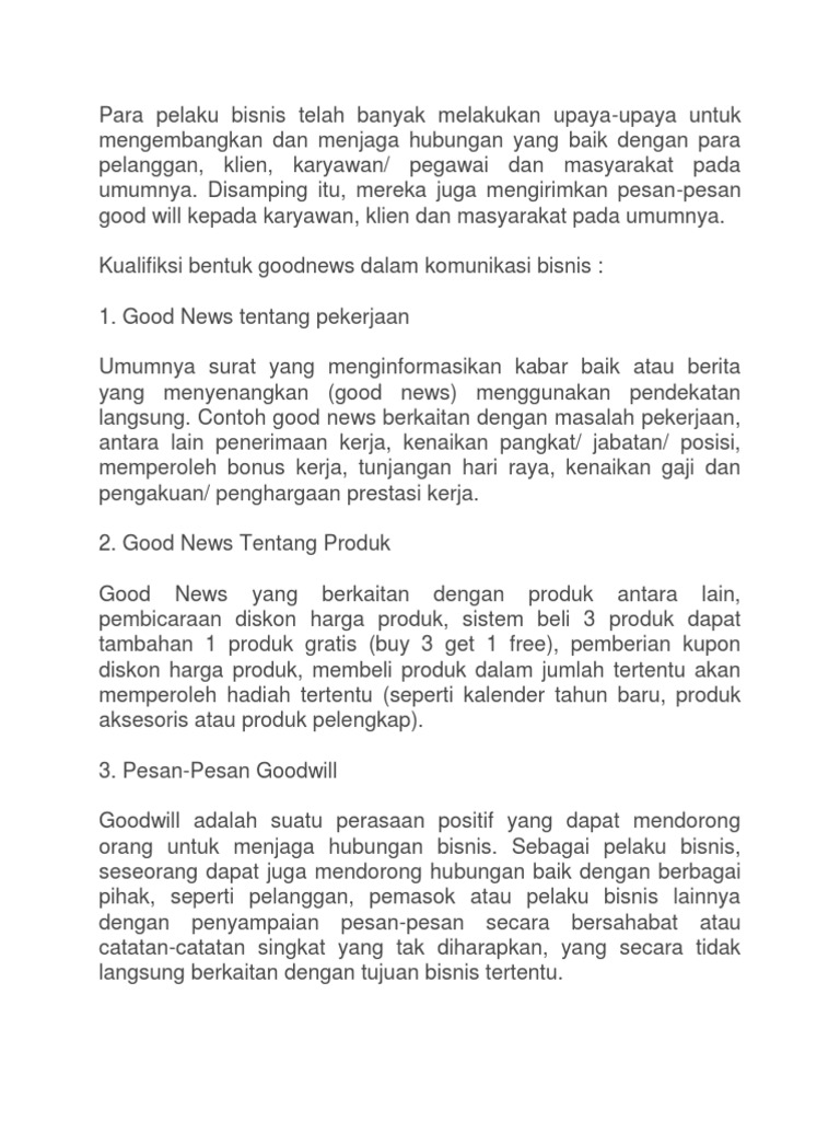 Penulisan Pesan Bisnis Ppt Download from slideplayer.info We did not find results for: Check spelling or type a new query. Contoh pesan good news dan goodwill. Maybe you would like to learn more about one of these?